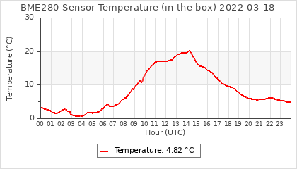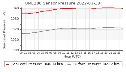 Experimental atmospheric pressure measurement with a simple sensor: BOSCH BME280The instrument is in the data collection box of the CR10X, the temperature and humidity do not reflect the real air conditions, because the box is in the sun and is not properly ventilated for these measurements.