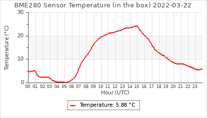 Experimental atmospheric pressure measurement with a simple sensor: BOSCH BME280The instrument is in the data collection box of the CR10X, the temperature and humidity do not reflect the real air conditions, because the box is in the sun and is not properly ventilated for these measurements.