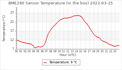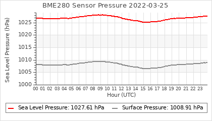 Experimental atmospheric pressure measurement with a simple sensor: BOSCH BME280The instrument is in the data collection box of the CR10X, the temperature and humidity do not reflect the real air conditions, because the box is in the sun and is not properly ventilated for these measurements.