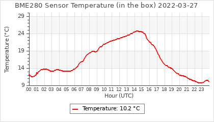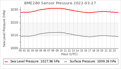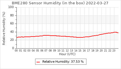 Experimental atmospheric pressure measurement with a simple sensor: BOSCH BME280The instrument is in the data collection box of the CR10X, the temperature and humidity do not reflect the real air conditions, because the box is in the sun and is not properly ventilated for these measurements.