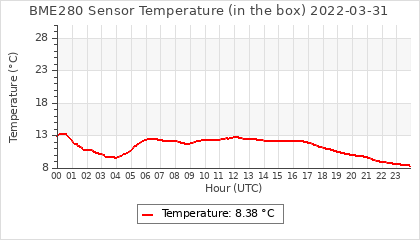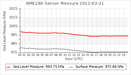 Experimental atmospheric pressure measurement with a simple sensor: BOSCH BME280The instrument is in the data collection box of the CR10X, the temperature and humidity do not reflect the real air conditions, because the box is in the sun and is not properly ventilated for these measurements.
