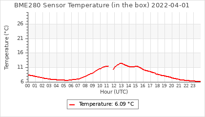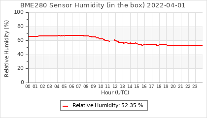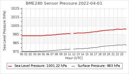 Experimental atmospheric pressure measurement with a simple sensor: BOSCH BME280The instrument is in the data collection box of the CR10X, the temperature and humidity do not reflect the real air conditions, because the box is in the sun and is not properly ventilated for these measurements.