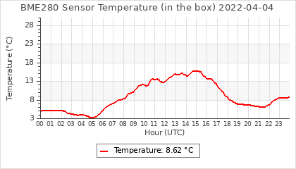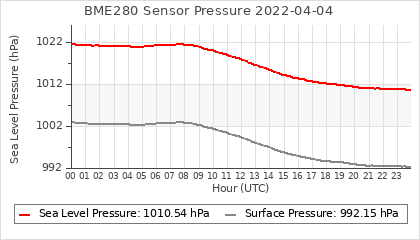 Experimental atmospheric pressure measurement with a simple sensor: BOSCH BME280The instrument is in the data collection box of the CR10X, the temperature and humidity do not reflect the real air conditions, because the box is in the sun and is not properly ventilated for these measurements.