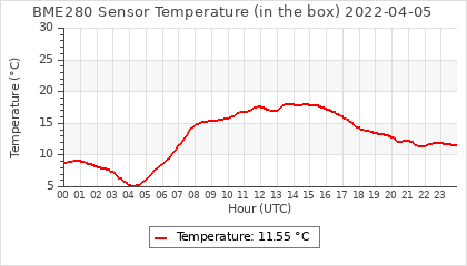 Experimental atmospheric pressure measurement with a simple sensor: BOSCH BME280The instrument is in the data collection box of the CR10X, the temperature and humidity do not reflect the real air conditions, because the box is in the sun and is not properly ventilated for these measurements.