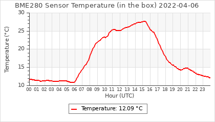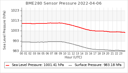 Experimental atmospheric pressure measurement with a simple sensor: BOSCH BME280The instrument is in the data collection box of the CR10X, the temperature and humidity do not reflect the real air conditions, because the box is in the sun and is not properly ventilated for these measurements.