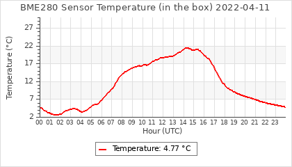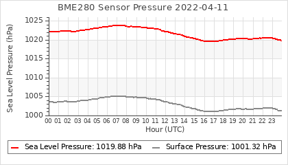 Experimental atmospheric pressure measurement with a simple sensor: BOSCH BME280The instrument is in the data collection box of the CR10X, the temperature and humidity do not reflect the real air conditions, because the box is in the sun and is not properly ventilated for these measurements.