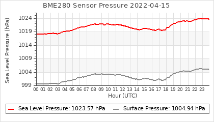 Experimental atmospheric pressure measurement with a simple sensor: BOSCH BME280The instrument is in the data collection box of the CR10X, the temperature and humidity do not reflect the real air conditions, because the box is in the sun and is not properly ventilated for these measurements.