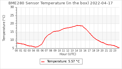 Experimental atmospheric pressure measurement with a simple sensor: BOSCH BME280The instrument is in the data collection box of the CR10X, the temperature and humidity do not reflect the real air conditions, because the box is in the sun and is not properly ventilated for these measurements.