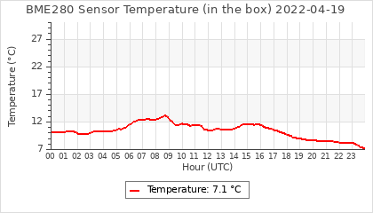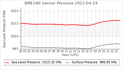 Experimental atmospheric pressure measurement with a simple sensor: BOSCH BME280The instrument is in the data collection box of the CR10X, the temperature and humidity do not reflect the real air conditions, because the box is in the sun and is not properly ventilated for these measurements.