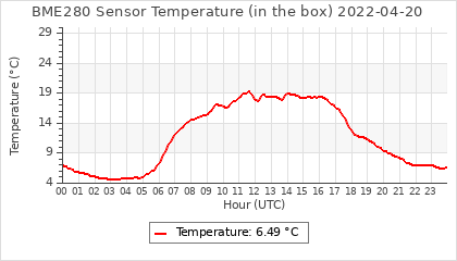 Experimental atmospheric pressure measurement with a simple sensor: BOSCH BME280The instrument is in the data collection box of the CR10X, the temperature and humidity do not reflect the real air conditions, because the box is in the sun and is not properly ventilated for these measurements.