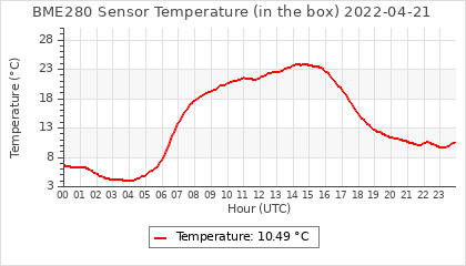 Experimental atmospheric pressure measurement with a simple sensor: BOSCH BME280The instrument is in the data collection box of the CR10X, the temperature and humidity do not reflect the real air conditions, because the box is in the sun and is not properly ventilated for these measurements.