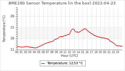 Experimental atmospheric pressure measurement with a simple sensor: BOSCH BME280The instrument is in the data collection box of the CR10X, the temperature and humidity do not reflect the real air conditions, because the box is in the sun and is not properly ventilated for these measurements.