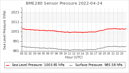 Experimental atmospheric pressure measurement with a simple sensor: BOSCH BME280The instrument is in the data collection box of the CR10X, the temperature and humidity do not reflect the real air conditions, because the box is in the sun and is not properly ventilated for these measurements.
