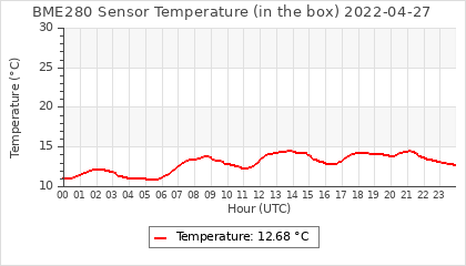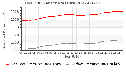 Experimental atmospheric pressure measurement with a simple sensor: BOSCH BME280The instrument is in the data collection box of the CR10X, the temperature and humidity do not reflect the real air conditions, because the box is in the sun and is not properly ventilated for these measurements.