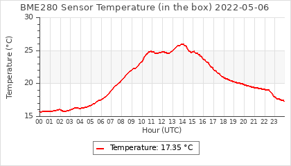Experimental atmospheric pressure measurement with a simple sensor: BOSCH BME280The instrument is in the data collection box of the CR10X, the temperature and humidity do not reflect the real air conditions, because the box is in the sun and is not properly ventilated for these measurements.