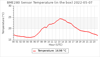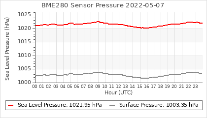 Experimental atmospheric pressure measurement with a simple sensor: BOSCH BME280The instrument is in the data collection box of the CR10X, the temperature and humidity do not reflect the real air conditions, because the box is in the sun and is not properly ventilated for these measurements.