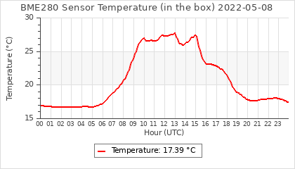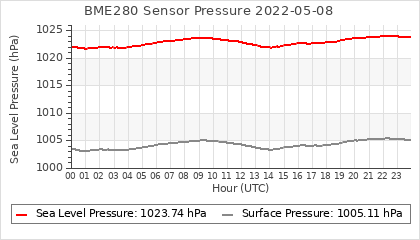 Experimental atmospheric pressure measurement with a simple sensor: BOSCH BME280The instrument is in the data collection box of the CR10X, the temperature and humidity do not reflect the real air conditions, because the box is in the sun and is not properly ventilated for these measurements.