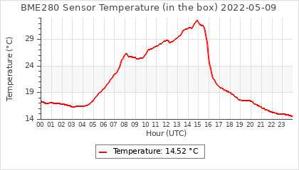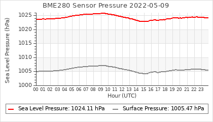 Experimental atmospheric pressure measurement with a simple sensor: BOSCH BME280The instrument is in the data collection box of the CR10X, the temperature and humidity do not reflect the real air conditions, because the box is in the sun and is not properly ventilated for these measurements.