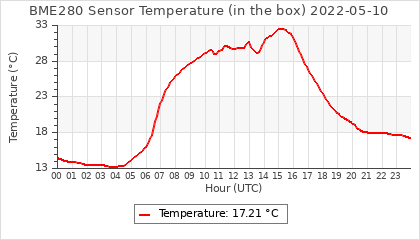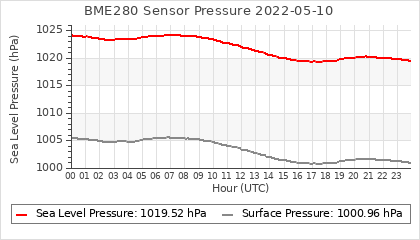 Experimental atmospheric pressure measurement with a simple sensor: BOSCH BME280The instrument is in the data collection box of the CR10X, the temperature and humidity do not reflect the real air conditions, because the box is in the sun and is not properly ventilated for these measurements.