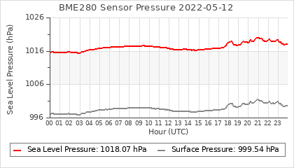Experimental atmospheric pressure measurement with a simple sensor: BOSCH BME280The instrument is in the data collection box of the CR10X, the temperature and humidity do not reflect the real air conditions, because the box is in the sun and is not properly ventilated for these measurements.