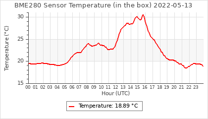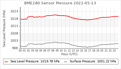 Experimental atmospheric pressure measurement with a simple sensor: BOSCH BME280The instrument is in the data collection box of the CR10X, the temperature and humidity do not reflect the real air conditions, because the box is in the sun and is not properly ventilated for these measurements.