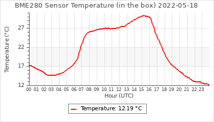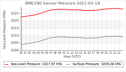 Experimental atmospheric pressure measurement with a simple sensor: BOSCH BME280The instrument is in the data collection box of the CR10X, the temperature and humidity do not reflect the real air conditions, because the box is in the sun and is not properly ventilated for these measurements.