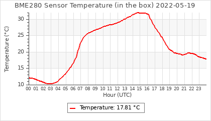 Experimental atmospheric pressure measurement with a simple sensor: BOSCH BME280The instrument is in the data collection box of the CR10X, the temperature and humidity do not reflect the real air conditions, because the box is in the sun and is not properly ventilated for these measurements.