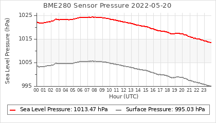 Experimental atmospheric pressure measurement with a simple sensor: BOSCH BME280The instrument is in the data collection box of the CR10X, the temperature and humidity do not reflect the real air conditions, because the box is in the sun and is not properly ventilated for these measurements.