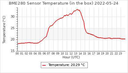 Experimental atmospheric pressure measurement with a simple sensor: BOSCH BME280The instrument is in the data collection box of the CR10X, the temperature and humidity do not reflect the real air conditions, because the box is in the sun and is not properly ventilated for these measurements.