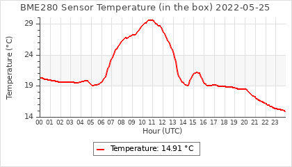 Experimental atmospheric pressure measurement with a simple sensor: BOSCH BME280The instrument is in the data collection box of the CR10X, the temperature and humidity do not reflect the real air conditions, because the box is in the sun and is not properly ventilated for these measurements.