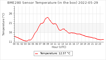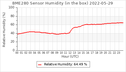 Experimental atmospheric pressure measurement with a simple sensor: BOSCH BME280The instrument is in the data collection box of the CR10X, the temperature and humidity do not reflect the real air conditions, because the box is in the sun and is not properly ventilated for these measurements.