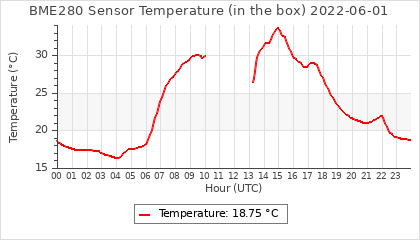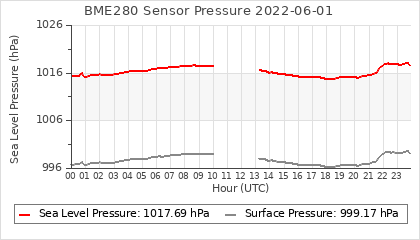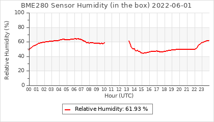 Experimental atmospheric pressure measurement with a simple sensor: BOSCH BME280The instrument is in the data collection box of the CR10X, the temperature and humidity do not reflect the real air conditions, because the box is in the sun and is not properly ventilated for these measurements.