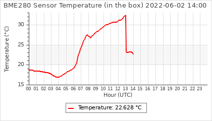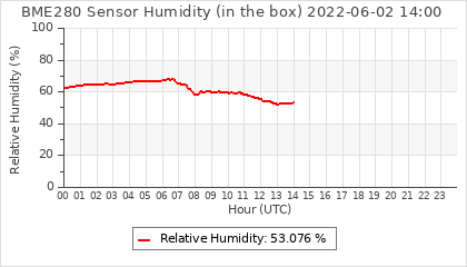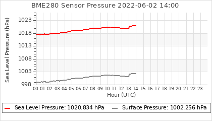Experimental atmospheric pressure measurement with a simple sensor: BOSCH BME280The instrument is in the data collection box of the CR10X, the temperature and humidity do not reflect the real air conditions, because the box is in the sun and is not properly ventilated for these measurements.