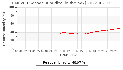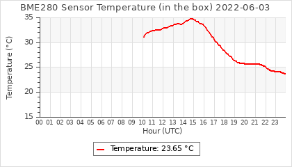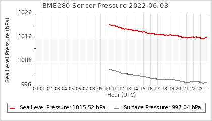 Experimental atmospheric pressure measurement with a simple sensor: BOSCH BME280The instrument is in the data collection box of the CR10X, the temperature and humidity do not reflect the real air conditions, because the box is in the sun and is not properly ventilated for these measurements.