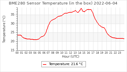 Experimental atmospheric pressure measurement with a simple sensor: BOSCH BME280The instrument is in the data collection box of the CR10X, the temperature and humidity do not reflect the real air conditions, because the box is in the sun and is not properly ventilated for these measurements.