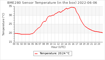 Experimental atmospheric pressure measurement with a simple sensor: BOSCH BME280The instrument is in the data collection box of the CR10X, the temperature and humidity do not reflect the real air conditions, because the box is in the sun and is not properly ventilated for these measurements.