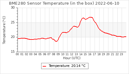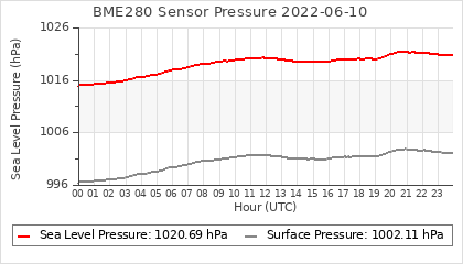 Experimental atmospheric pressure measurement with a simple sensor: BOSCH BME280The instrument is in the data collection box of the CR10X, the temperature and humidity do not reflect the real air conditions, because the box is in the sun and is not properly ventilated for these measurements.