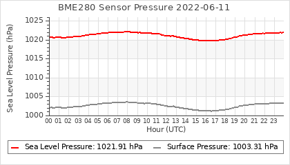 Experimental atmospheric pressure measurement with a simple sensor: BOSCH BME280The instrument is in the data collection box of the CR10X, the temperature and humidity do not reflect the real air conditions, because the box is in the sun and is not properly ventilated for these measurements.