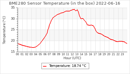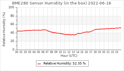 Experimental atmospheric pressure measurement with a simple sensor: BOSCH BME280The instrument is in the data collection box of the CR10X, the temperature and humidity do not reflect the real air conditions, because the box is in the sun and is not properly ventilated for these measurements.