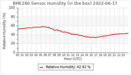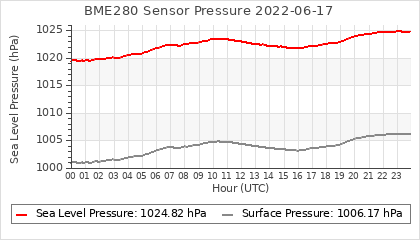 Experimental atmospheric pressure measurement with a simple sensor: BOSCH BME280The instrument is in the data collection box of the CR10X, the temperature and humidity do not reflect the real air conditions, because the box is in the sun and is not properly ventilated for these measurements.