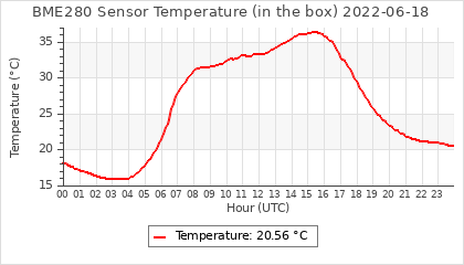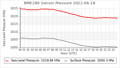 Experimental atmospheric pressure measurement with a simple sensor: BOSCH BME280The instrument is in the data collection box of the CR10X, the temperature and humidity do not reflect the real air conditions, because the box is in the sun and is not properly ventilated for these measurements.