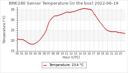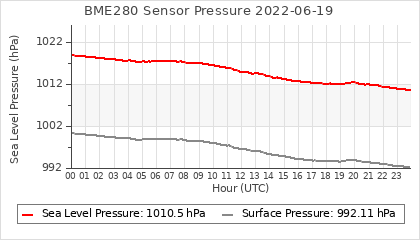 Experimental atmospheric pressure measurement with a simple sensor: BOSCH BME280The instrument is in the data collection box of the CR10X, the temperature and humidity do not reflect the real air conditions, because the box is in the sun and is not properly ventilated for these measurements.