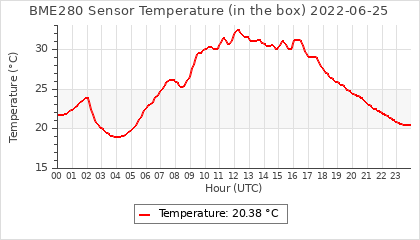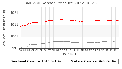 Experimental atmospheric pressure measurement with a simple sensor: BOSCH BME280The instrument is in the data collection box of the CR10X, the temperature and humidity do not reflect the real air conditions, because the box is in the sun and is not properly ventilated for these measurements.