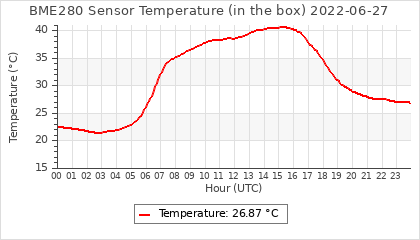 Experimental atmospheric pressure measurement with a simple sensor: BOSCH BME280The instrument is in the data collection box of the CR10X, the temperature and humidity do not reflect the real air conditions, because the box is in the sun and is not properly ventilated for these measurements.