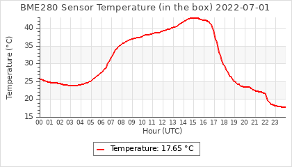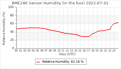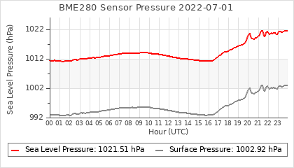 Experimental atmospheric pressure measurement with a simple sensor: BOSCH BME280The instrument is in the data collection box of the CR10X, the temperature and humidity do not reflect the real air conditions, because the box is in the sun and is not properly ventilated for these measurements.