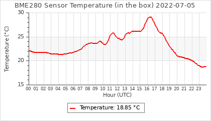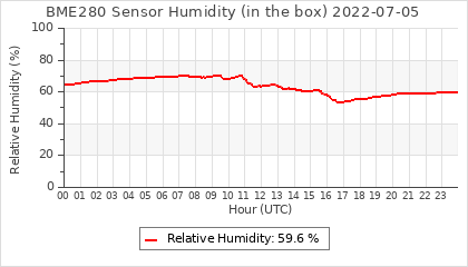Experimental atmospheric pressure measurement with a simple sensor: BOSCH BME280The instrument is in the data collection box of the CR10X, the temperature and humidity do not reflect the real air conditions, because the box is in the sun and is not properly ventilated for these measurements.