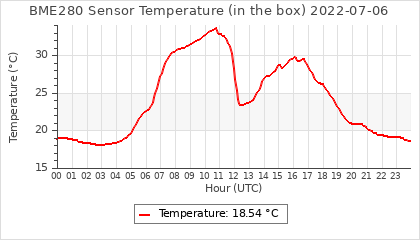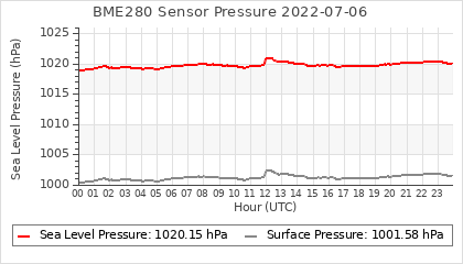 Experimental atmospheric pressure measurement with a simple sensor: BOSCH BME280The instrument is in the data collection box of the CR10X, the temperature and humidity do not reflect the real air conditions, because the box is in the sun and is not properly ventilated for these measurements.