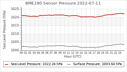 Experimental atmospheric pressure measurement with a simple sensor: BOSCH BME280The instrument is in the data collection box of the CR10X, the temperature and humidity do not reflect the real air conditions, because the box is in the sun and is not properly ventilated for these measurements.