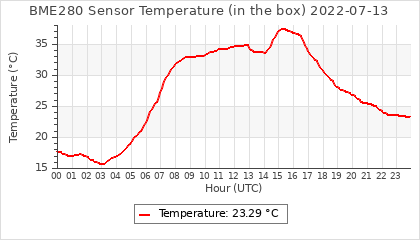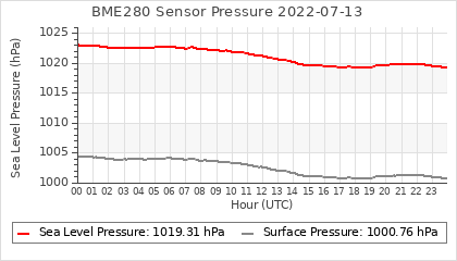Experimental atmospheric pressure measurement with a simple sensor: BOSCH BME280The instrument is in the data collection box of the CR10X, the temperature and humidity do not reflect the real air conditions, because the box is in the sun and is not properly ventilated for these measurements.
