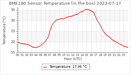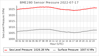 Experimental atmospheric pressure measurement with a simple sensor: BOSCH BME280The instrument is in the data collection box of the CR10X, the temperature and humidity do not reflect the real air conditions, because the box is in the sun and is not properly ventilated for these measurements.